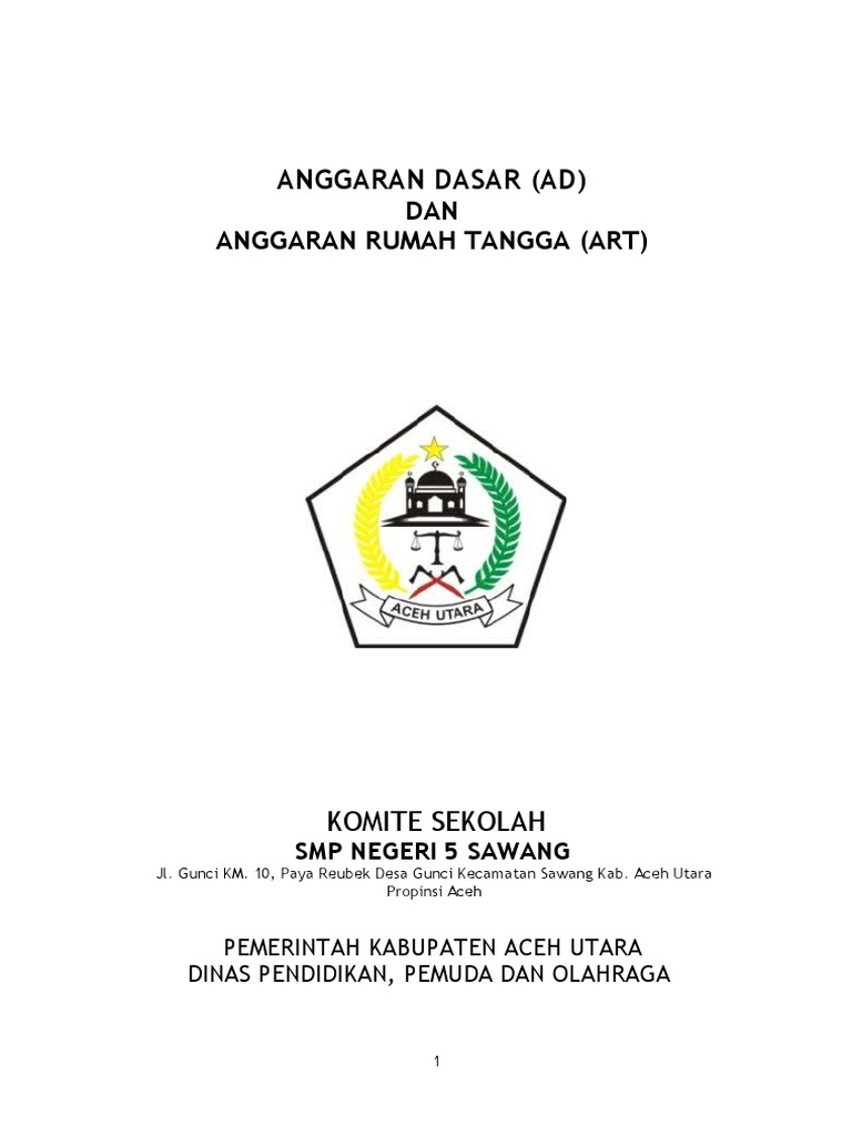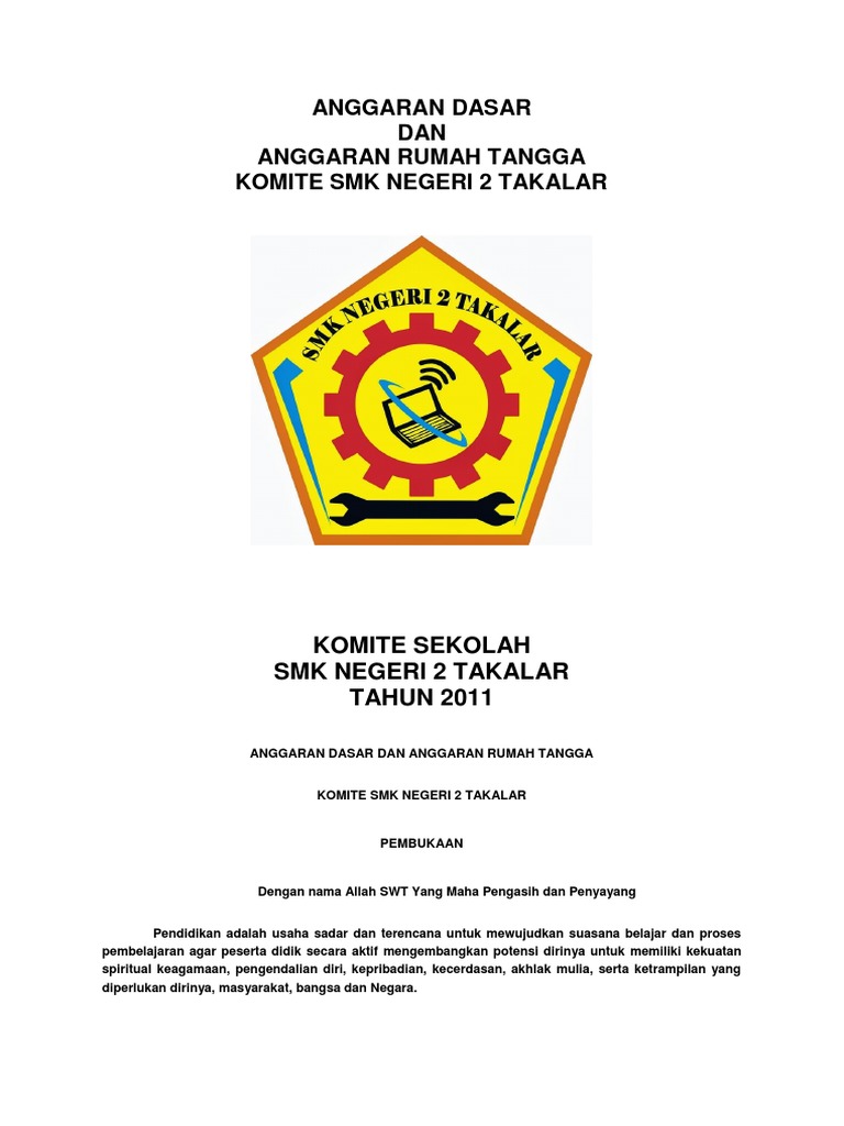 Anggaran Dasar Ad Dan Anggaran Rumah Tangga Art Komite Sekolah Pdf